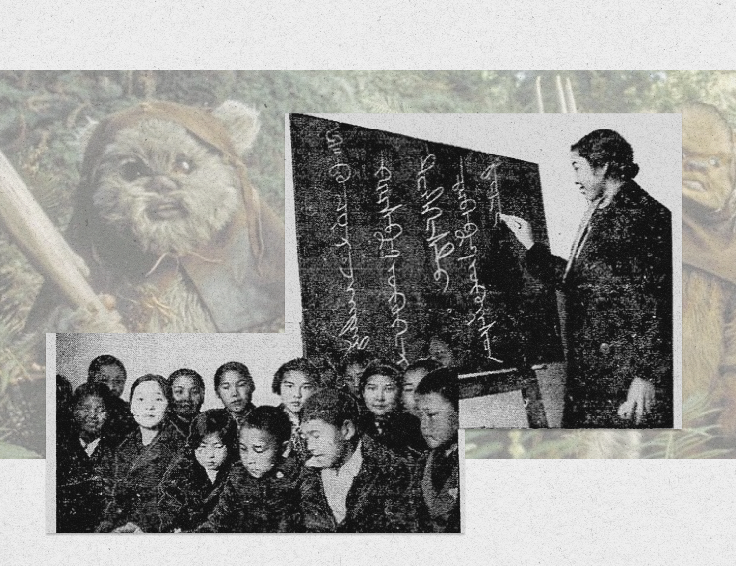 В Эпизоде VI Звёздных войн, "Возвращение джедая", дебютировавшем в 1983 г., но до нас дошедшем лишь в девяностые, миру были представлены маленькие покрытые шерстью существа, медвежата-собаки, ходящие на задних лапах и прущие против Империи, вооружившись копьями и камнями, — эвоки. Эти смешные создания, противопоставленные высокотехнологичному миру, в котором происходят события фильма, издавали звуки, которые мало кто слушал, потому что они не имели значения для сюжета и были скорее звуковым эффектом, чем речью. Некоторые из этих звуков оказались калмыцким языком.