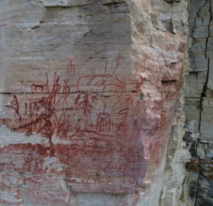 На среднеленских скалах сохранились надписи и рисунки, которые отражают почитание духов земли и охоты. Эти тексты созданы с использованием орхоно-енисейских знаков.