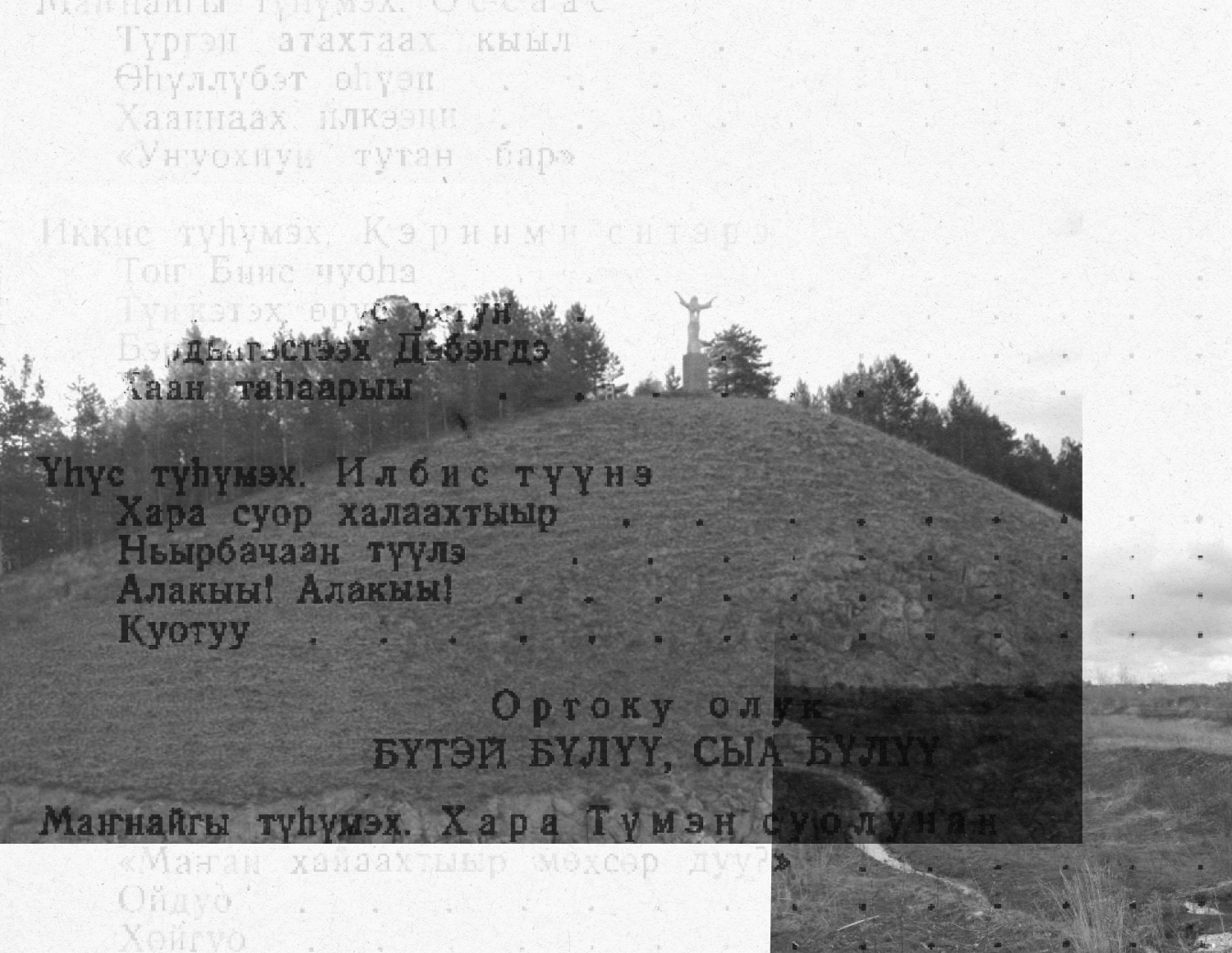 Небольшой сборник включает рассказы, повесть и дневниковые записи об археологических раскопках возле ныне затопленного села Туой Хайа.